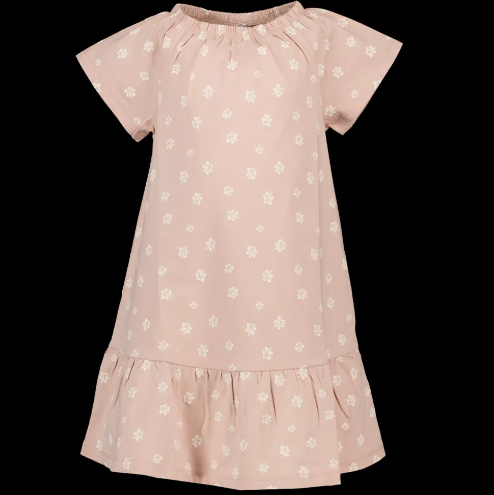Deze jurk voor vrouwen heeft een lichte roze kleur met een klein bloemenpatroon. Het materiaal bestaat uit 100% katoen, wat zorgt voor een natuurlijke en ademende stof. De jurk heeft korte mouwen en een zachte uitstraling.