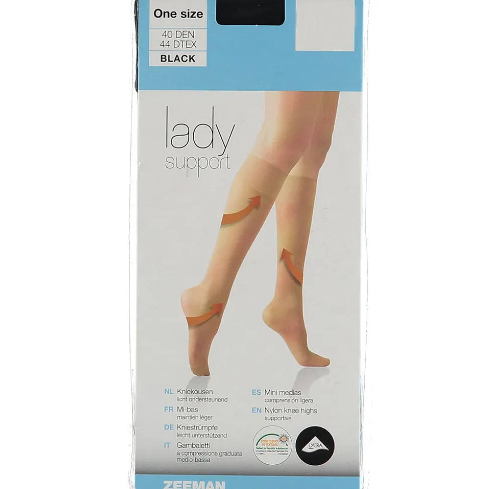 Deze zwarte kniekousen zijn gemaakt van een mix van 86% polyamide en 14% elastaan. Hierdoor zitten ze prettig en sluiten ze goed aan. Ze bieden lichte ondersteuning en zijn geschikt voor dagelijks gebruik. De fijne stof zorgt voor comfort tijdens het dragen.