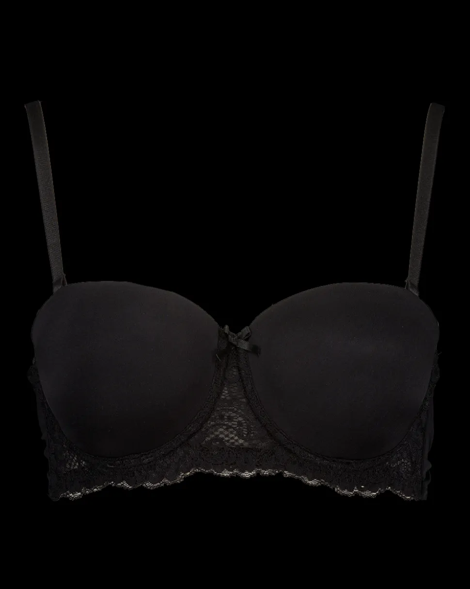 Deze zwarte bh met vulling is gemaakt van kant en heeft een normale onderborst. De bh bevat polyester, elastaan en polyamide en biedt ondersteuning met een comfortabele pasvorm. De bh is geschikt voor vrouwen en wordt per twee stuks geleverd.
