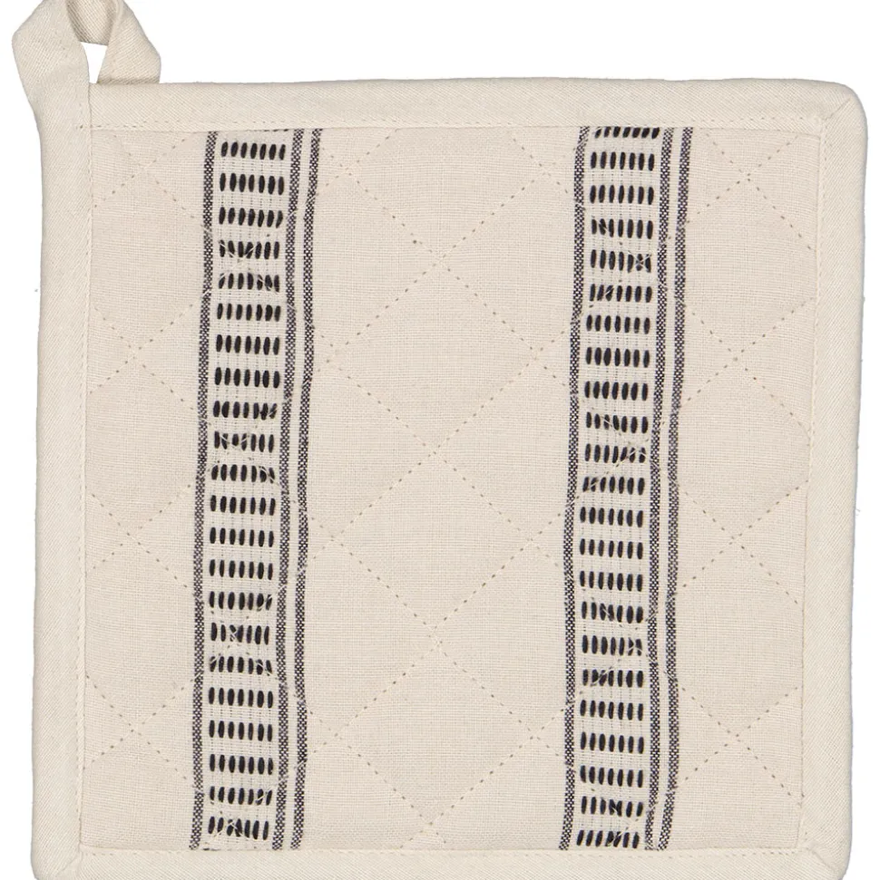 Of je ze nu gebruikt om hete pannen of schotels te verplaatsen of bijvoorbeeld als onderzetter voor hete pannen, een pannenlap is een waardevolle aanvulling op je keuken. Daarnaast geeft het design van de lap ook een unieke uitstraling aan je keuken als hij in het zicht hangt. Deze pannenlap in de kleur zand is gemaakt van een dikke en zachte stof en heeft een formaat van 20 x 20 cm. Hierdoor beschermen ze je handen en je tafel of aanrecht goed tegen de hitte.