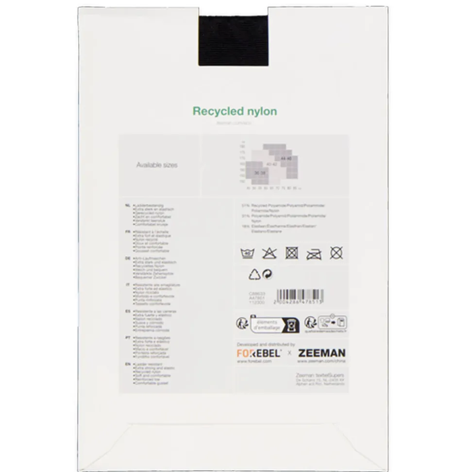 Deze anti-ladder panty van 20 denier is verbeterd in kwaliteit, wat de kans op ladders een stuk kleiner maakt. De panty is extra sterk maar ook zacht en comfortabel. Het broekje en de teenstukken zijn versterkt. De panty is gemaakt van 82% polyamide en van 18% van elastaan. Door de toevoeging van elastaan heeft de stof meer stretch. Dit zorgt voor een aansluitende pasvorm. Het polyamide bestaat voor minstens 50% uit gerecycled materiaal. Dit wil zeggen dat voor minimaal de helft van de stof, restmateriaal uit eerdere productie opnieuw is gebruikt. Het restmateriaal wordt teruggebracht tot de vezel en tot een nieuw garen gesponnen. Zo zijn we zuiniger op materialen.