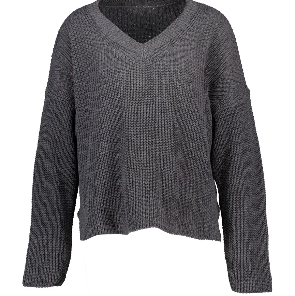 Deze grijze pullover is gemaakt voor dames en biedt een comfortabele fit. De stof bevat 49% acryl, wat zorgt voor een zachte en warme uitstraling. Met een V-hals en lange mouwen is deze pullover een veelzijdige aanvulling op je garderobe. Ideaal voor verschillende combinaties.