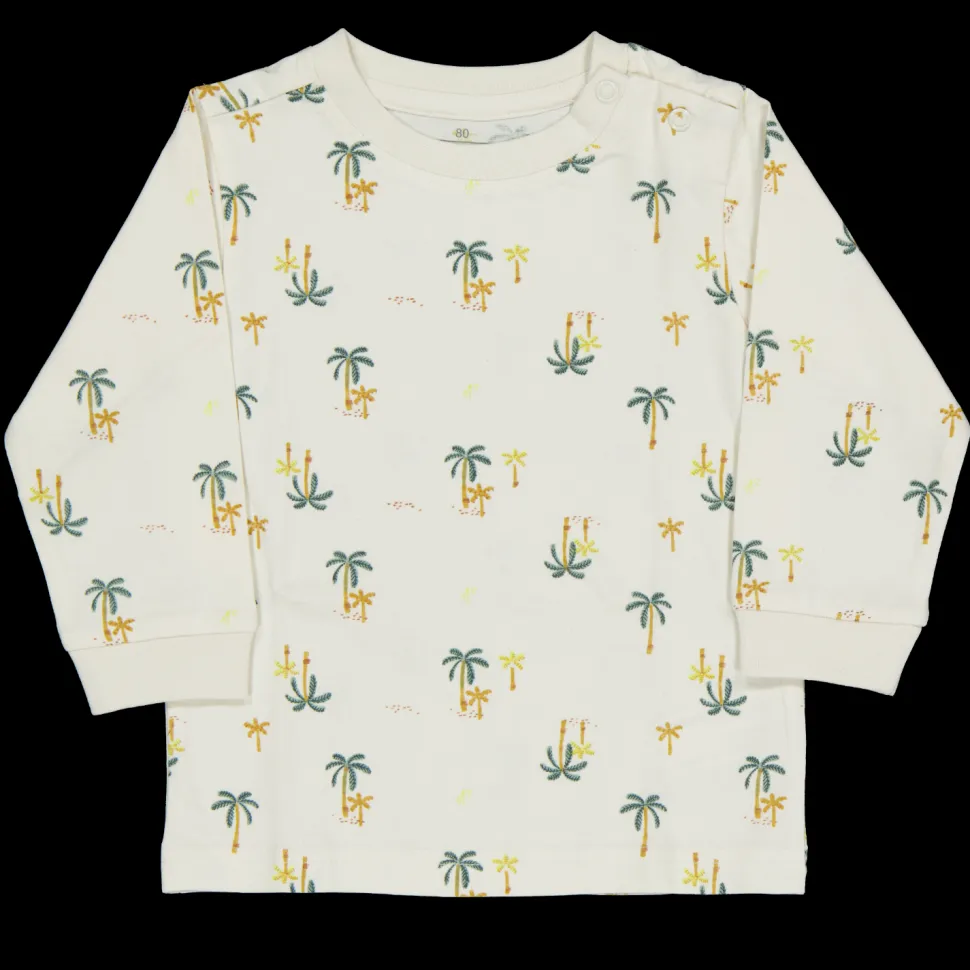 Deze pyjama voor baby’s is unisex en komt in een frisse witte kleur met een leuk all-over print van palmboompjes. De samenstelling van 97% katoen en 3% elastaan zorgt voor een zachte en comfortabele pasvorm. Dankzij de drukknoopjes aan de schouder is aankleden eenvoudig en snel.