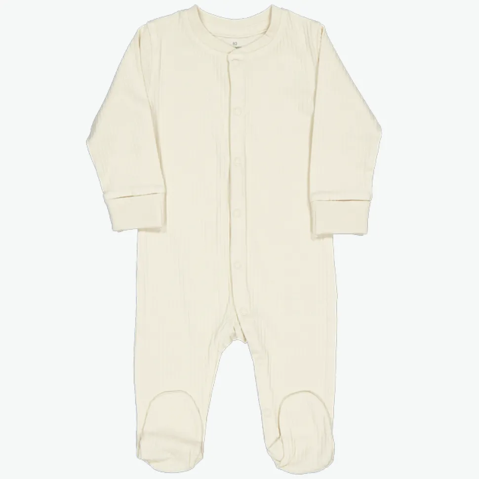 Deze witte pyjama voor baby's heeft een praktische drukknoopsluiting en lange mouwen. Het ontwerp zonder voetjes biedt vrijheid voor de kleine. Gemaakt van een prettig en zacht materiaal, zorgt het voor een comfortabele pasvorm. Ideaal voor de rustige momenten van de dag.