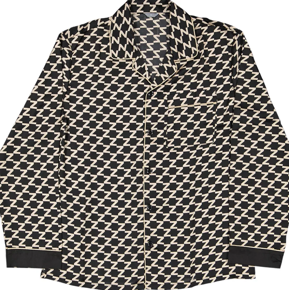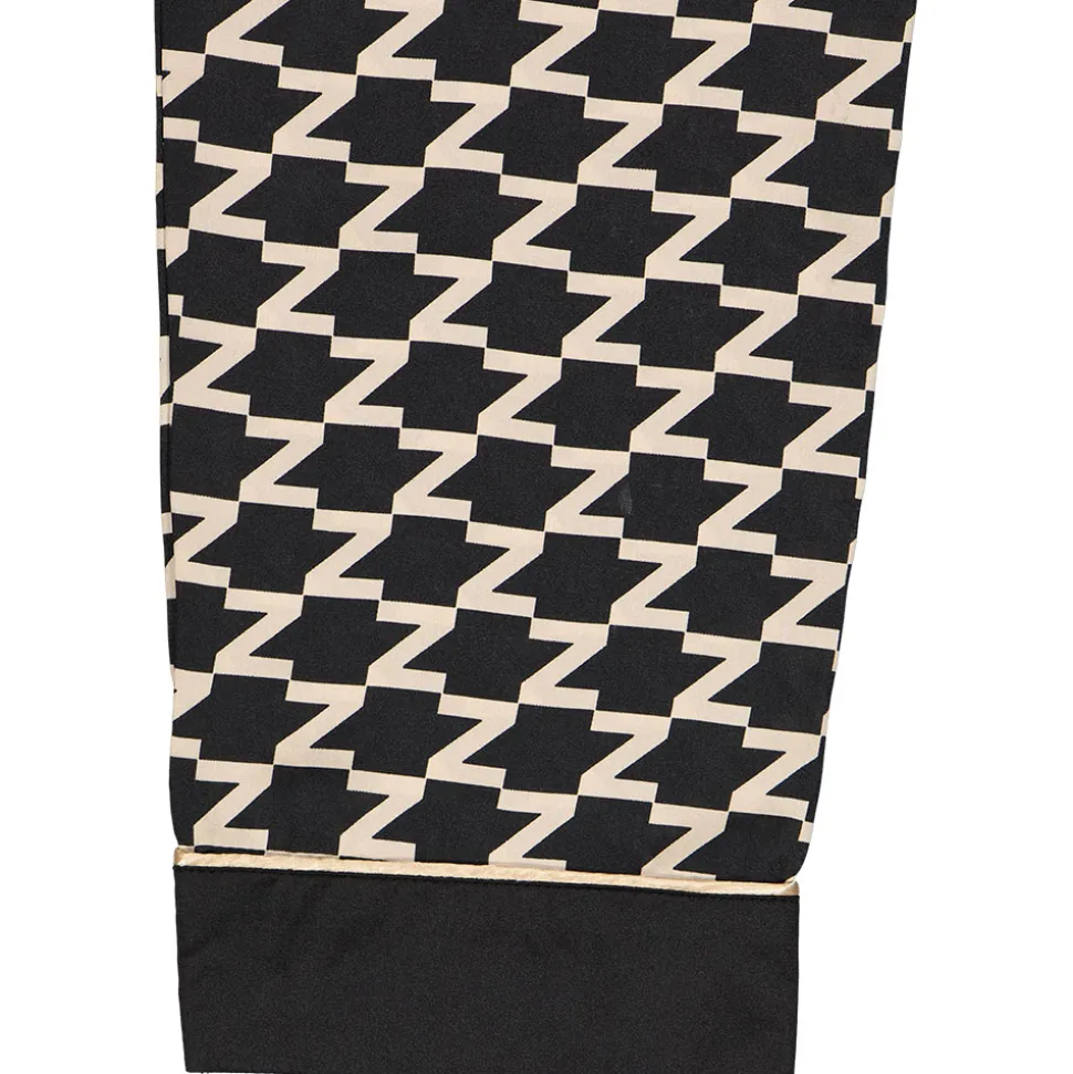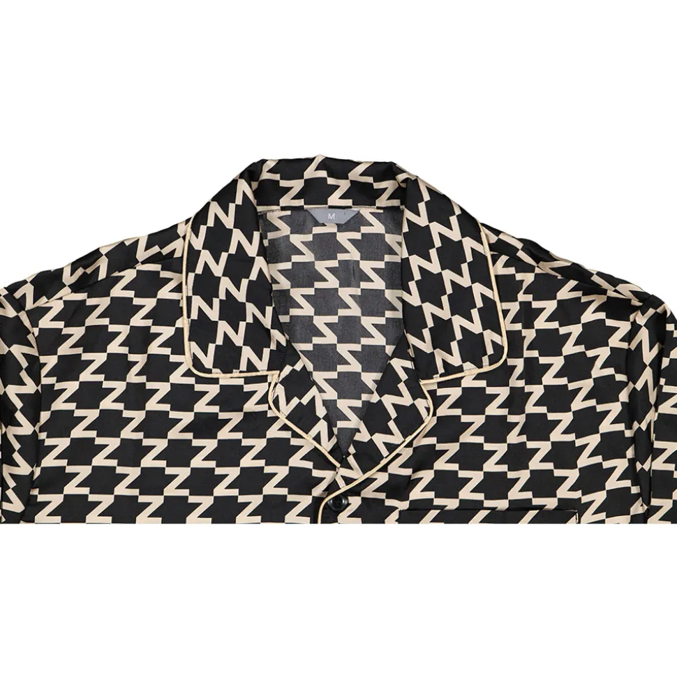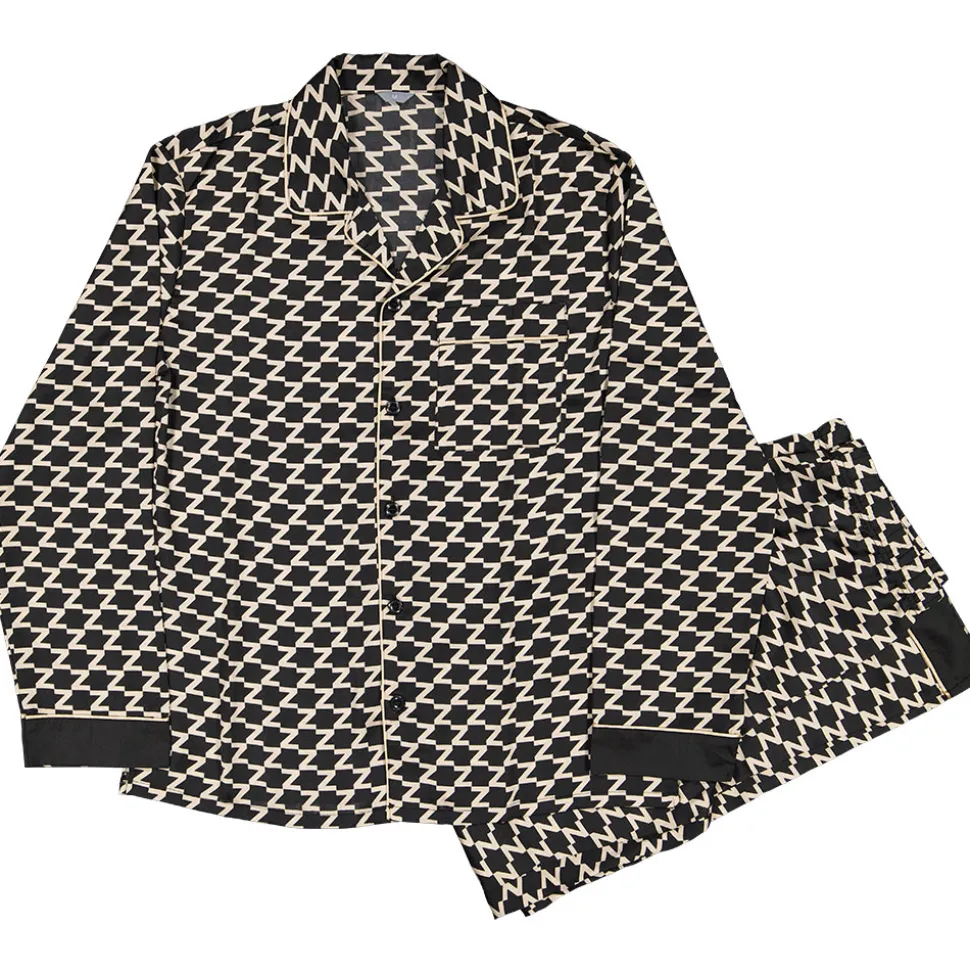 Kleding van goede kwaliteit met een luxe uitstraling hoeft niet duur te zijn. Daarom hebben we deze luxe, satijnen heren pyjama gemaakt. Door de satijnen stof, de Z-print en de brede zwarte zomen aan de uiteinden van de mouwen en broekspijpen heeft deze pyjama een luxe uitstraling. De blouse heeft een omgeslagen kraag, een borstvakje en een knopenlijst aan de voorkant. Door de elastische tailleband sluit de pyjamabroek goed aan. En zit hij de hele nacht lekker. Het satijn is voor 100% gemaakt van polyester. Satijn is een weeftechniek die de stof zacht, luchtig en glanzend maakt. En dat voor de laagst mogelijke prijs.