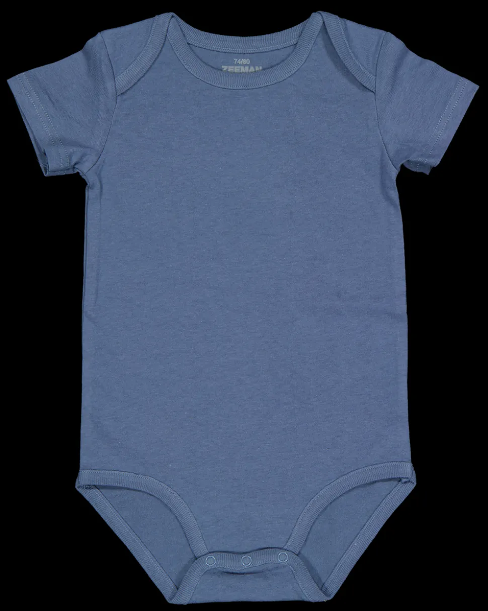 Deze romper is gemaakt van 100% katoen en geschikt voor baby's. De set bevat een blanco romper in de kleur blauw en een witte romper met een print in blauw. Beide hebben korte mouwen en zijn geschikt voor zowel jongens als meisjes.