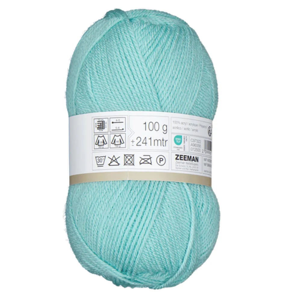 Deze breigaren heeft een samenstelling van 100% acryl en is blauw van kleur. Het garen weegt 100 gram en is geschikt voor breinaalden van 28. Bij 18 steken ontstaat een goed patroon om mee te breien.