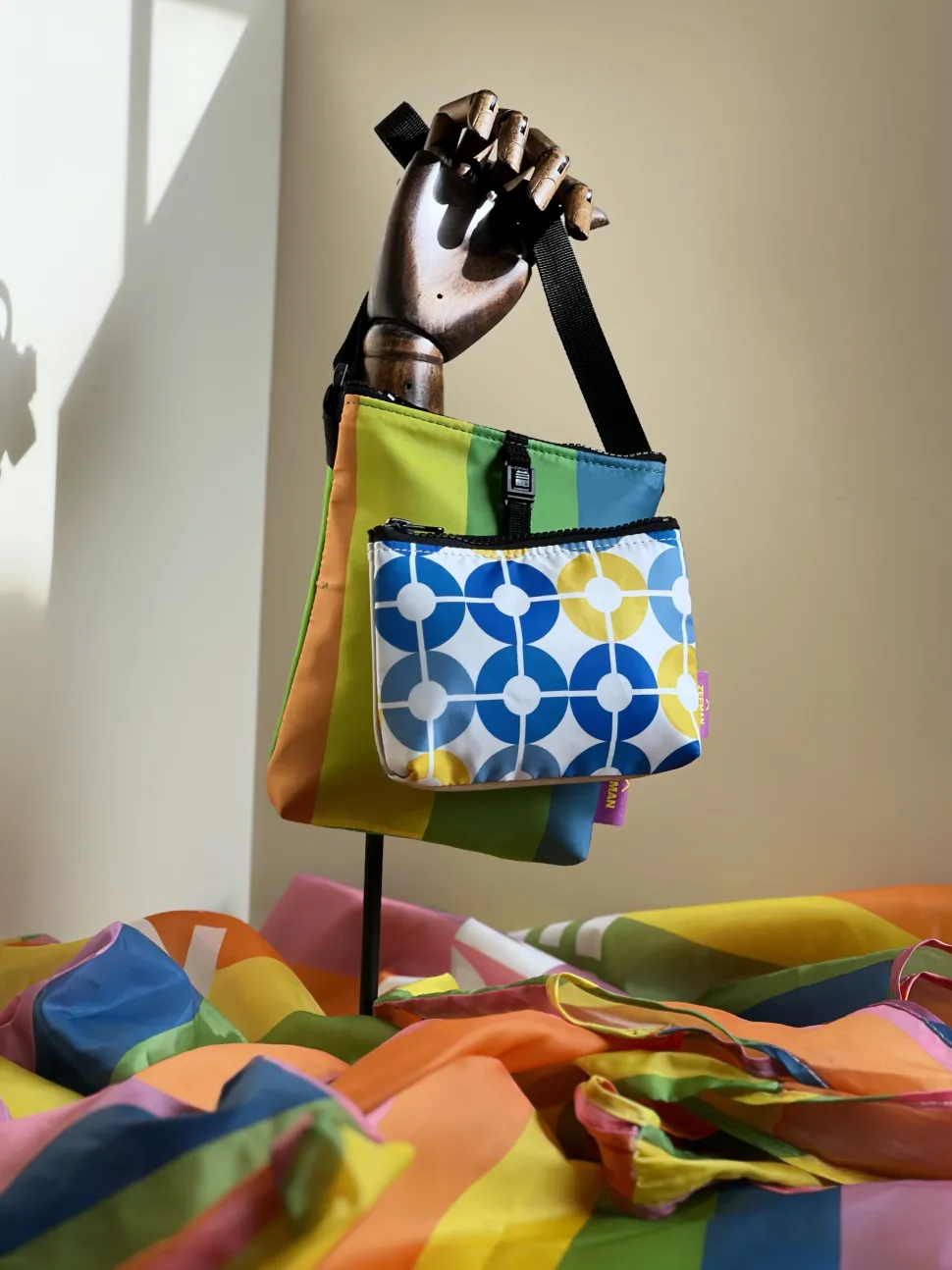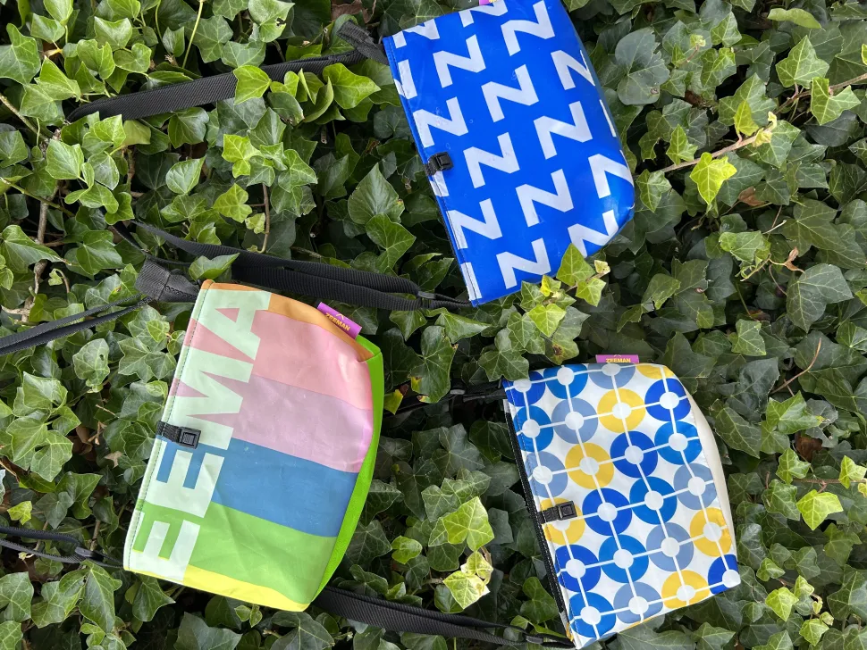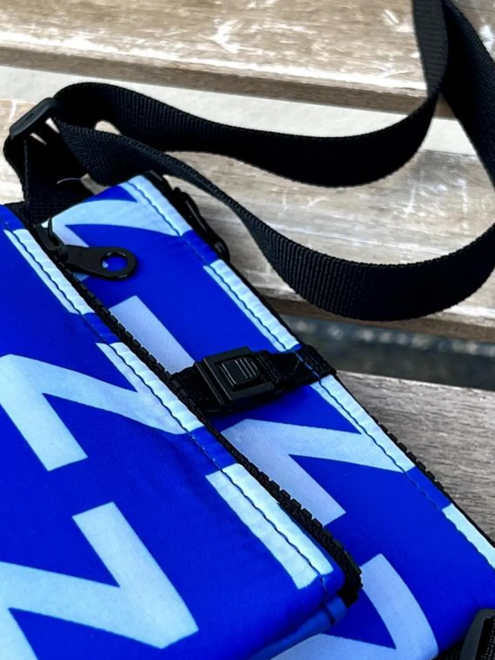 Uniek aan deze tassen is de mogelijkheid om de kleinere tassen uit de serie aan de voorkant van de grotere tas vast te maken met een clip, waardoor je extra opbergruimte krijgt en de tas nog veelzijdiger wordt. De stevige ritssluiting en de comfortabele schouderband zijn de enige onderdelen die niet upcycled zijn, maar ze zijn zorgvuldig gekozen voor hun duurzaamheid en functionaliteit. De schouderband is verstelbaar en heeft een afmeting van 135 x 2 cm. Kies jouw favoriete tas en draag meteen bij aan een duurzame toekomst.