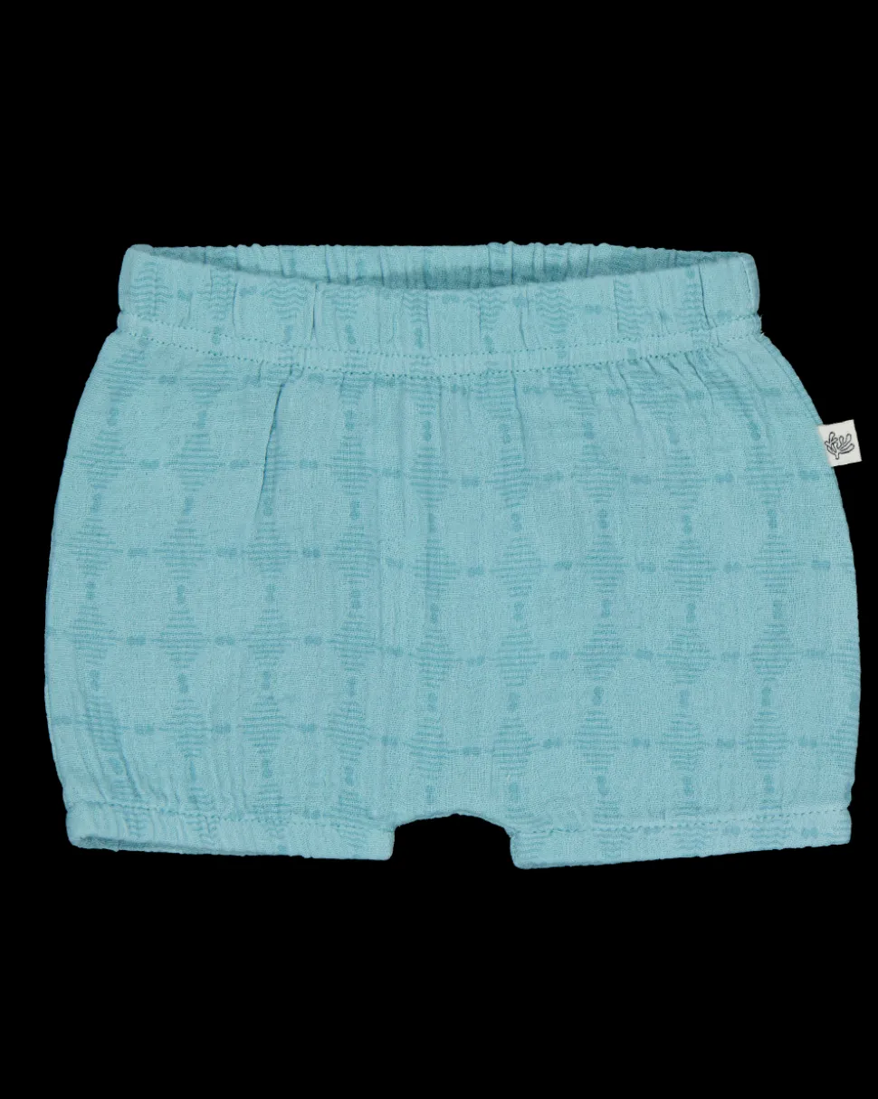 Deze korte broek in de kleur blauw is gemaakt van 100% katoen. Deze unisex broek is geschikt voor baby's en heeft een elastische tailleband voor extra comfort. Het lichte materiaal zorgt voor draaggemak bij warm weer.