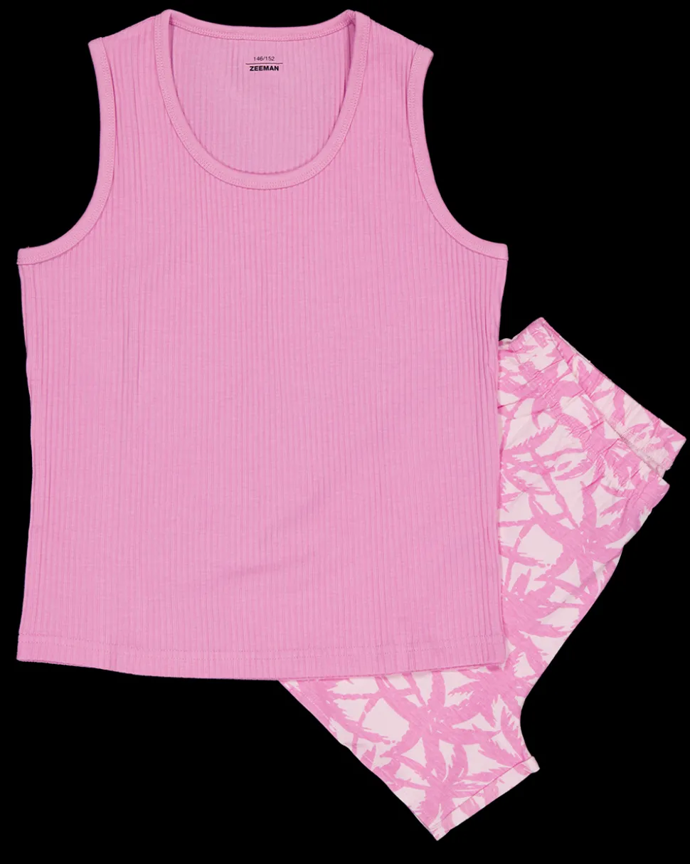 Deze roze shortama voor tienermeisjes bestaat uit katoen, polyester en elastaan. Het mouwloze shirt zorgt voor een luchtige pasvorm. De zachte stof biedt comfort tijdens het slapen of ontspannen thuis. De shortama is praktisch en draagt prettig bij warme temperaturen.