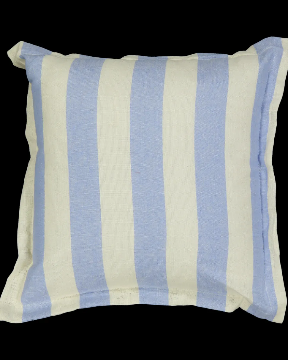 Deze kussensloop is gemaakt van 100% katoen en gevuld met polyester. De blauwe en crèmekleurige strepen geven een frisse uitstraling aan je interieur. Het kussen biedt comfort en steun, ideaal voor op de bank of bed. Een eenvoudig item om je ruimte op te fleuren.