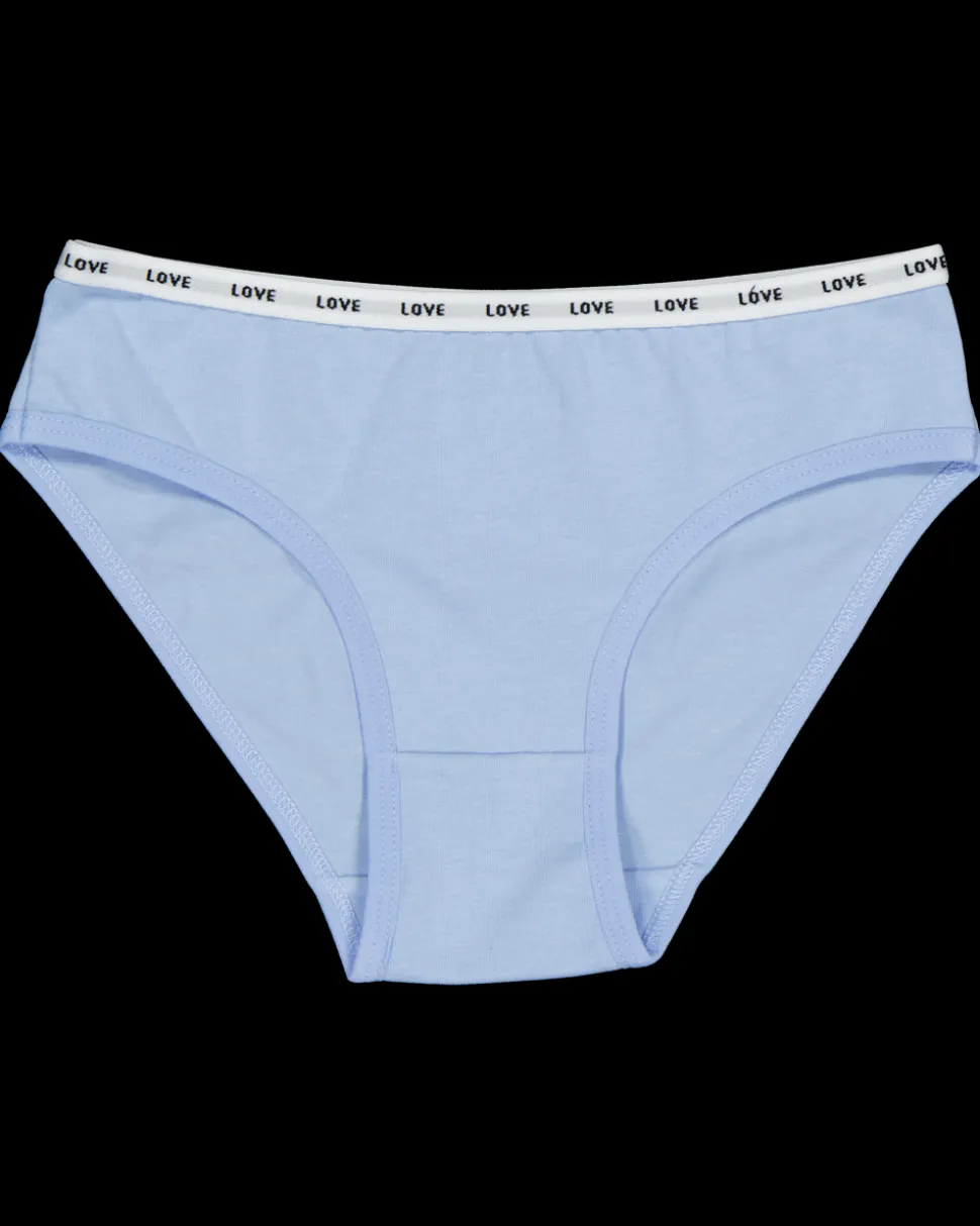 Deze slips voor meisjes zijn gemaakt in verschillende tinten blauw en wit. Ze hebben een elastische band met tekst. Door de afwisseling in kleuren heb je altijd een passende slip bij je kleding. De stoffen zorgen voor een comfortabel draaggevoel.