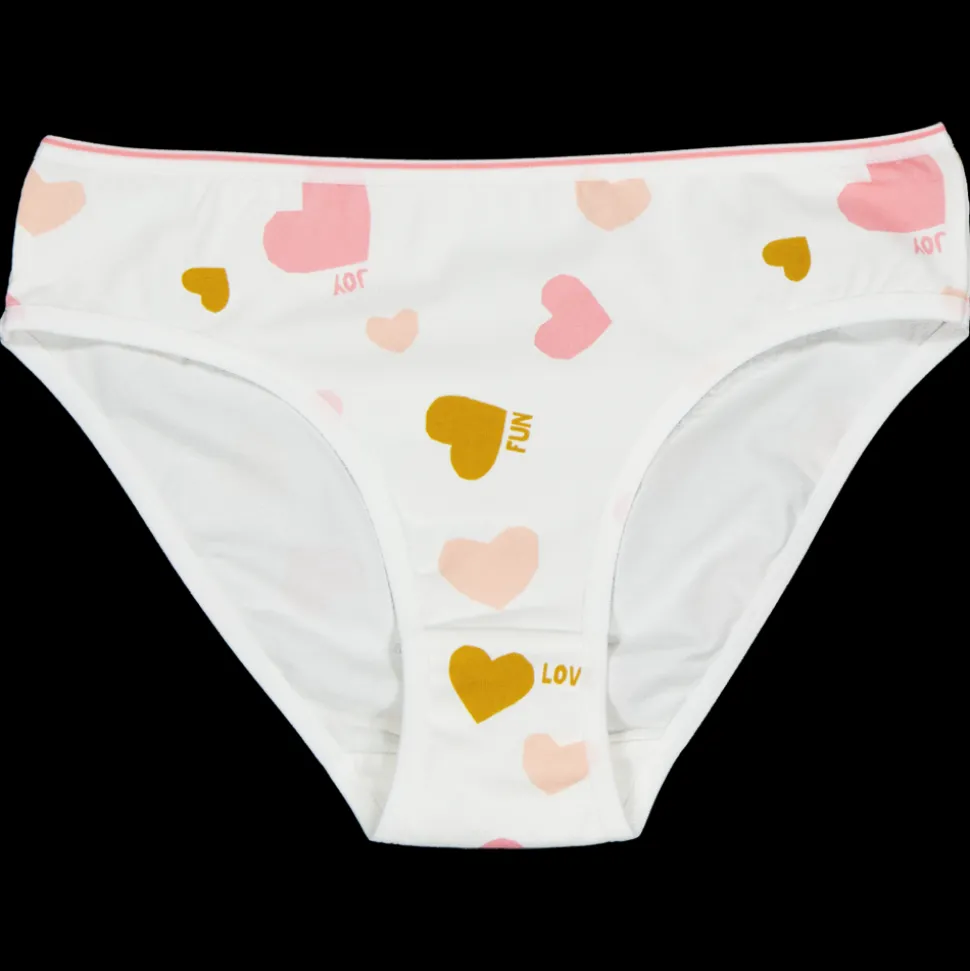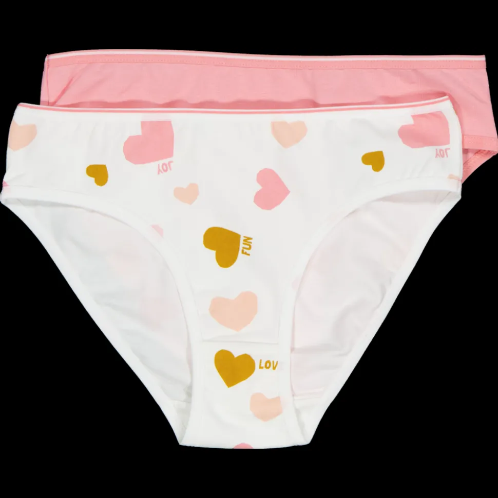 Deze set van twee onderbroeken voor tienermeisjes is een handige keuze. De halfhoge pasvorm biedt comfort en ondersteuning. Eén broekje is wit met een schattig hartjespatroon, terwijl het andere in een zachte kleur komt. Deze onderbroeken zijn praktisch en veelzijdig voor elke dag.
