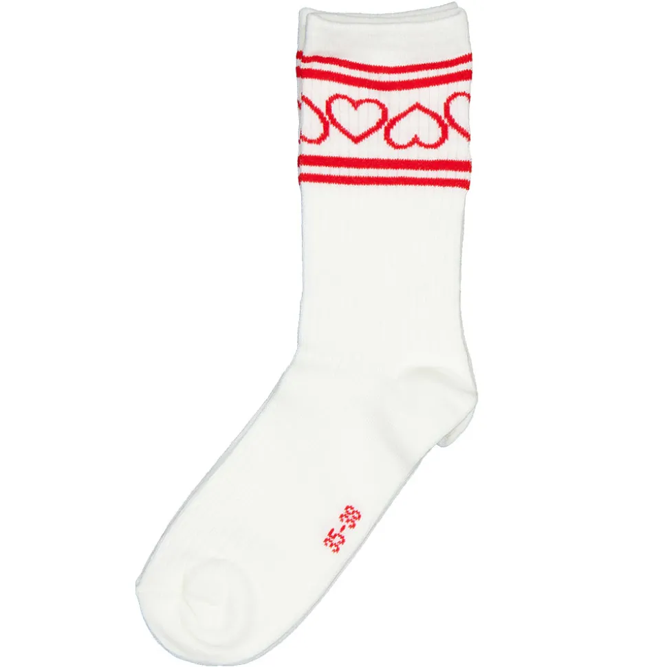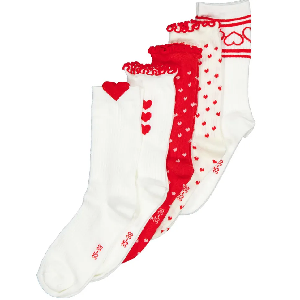 Deze witte sokken voor vrouwen hebben verschillende motieven met rode accenten, zoals hartjes en lijnen. De sokken zijn te combineren met verschillende outfits en bieden een comfortabele pasvorm. Je krijgt meerdere paar voor de afwisseling.