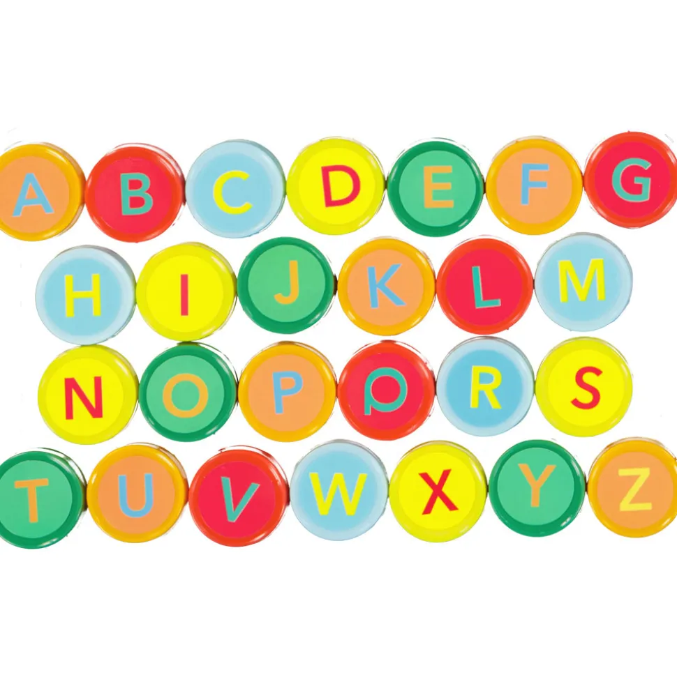 Met deze set met 26 stempels kan je op een leuke manier woordjes schrijven en sommen maken. Verder kan je met de verschillende figuren de mooiste tekeningen maken. Geschikt voor kinderen ouder dan 3 jaar.
