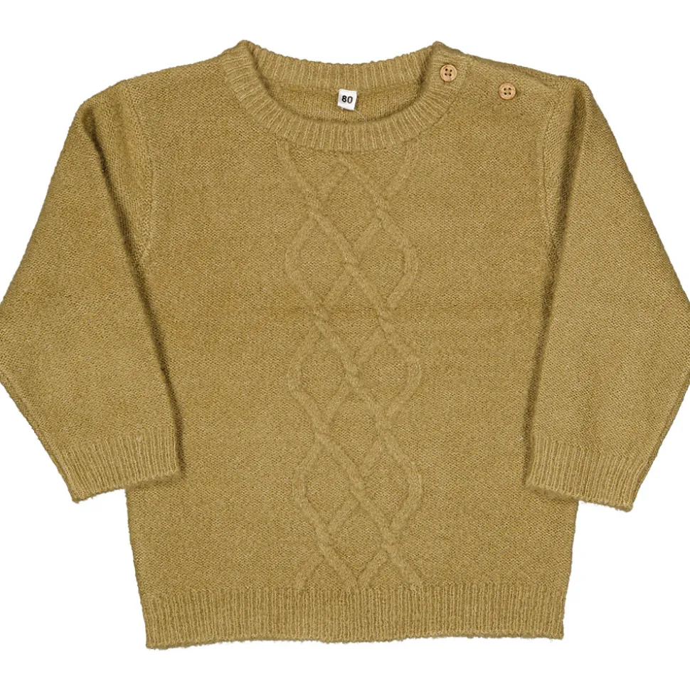 Tijdens de koudere seizoenen van het jaar kan een baby sweater niet missen. Met deze baby jongens sweater in de kleur zand houd je de lichaamstemperatuur van de kleine op peil, ook in koelere ruimtes of wanneer je van plan bent naar buiten te gaan. Door de drukknoopjes of de envelophals trek je hem gemakkelijker aan- en uit. De openingen aan de uiteinden van de mouwen zijn versmald, waardoor ze fijn en mooi aansluiten.