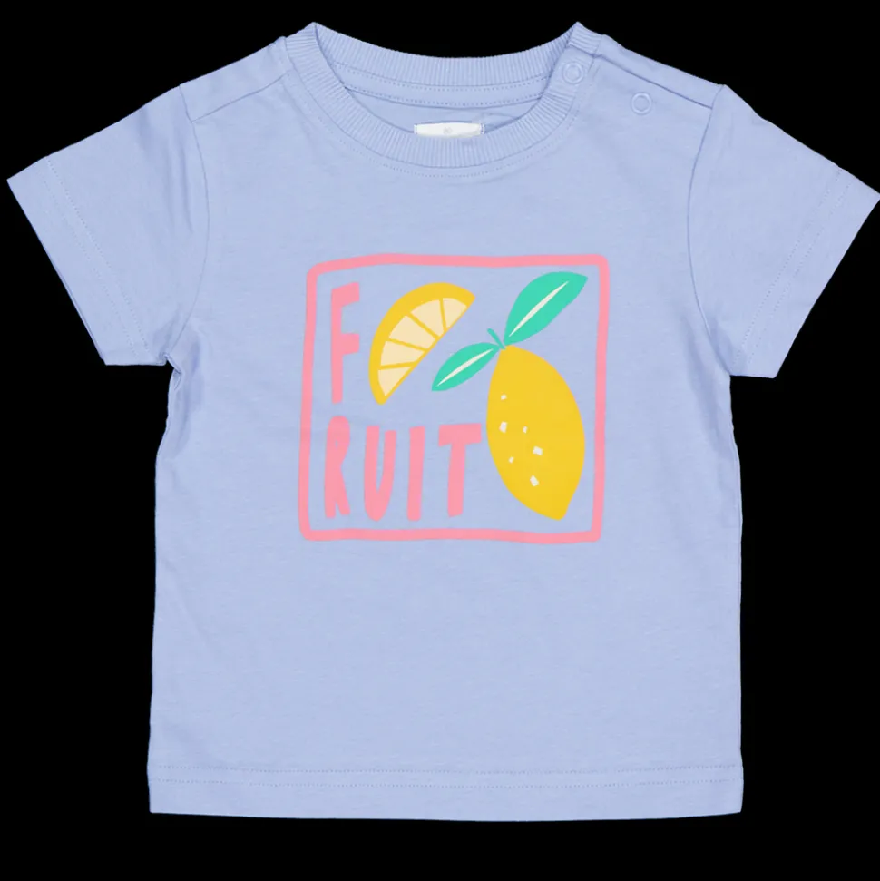 Dit T-shirt voor baby's is gemaakt van 100% katoen. Het heeft een leuke blauwe kleur en een vrolijke print met fruit. Dankzij de drukknoopjes aan de schouder trek je het gemakkelijk aan en uit. Dit unisex T-shirt biedt comfort voor jouw kleintje en is een fijne keuze voor elke dag.
