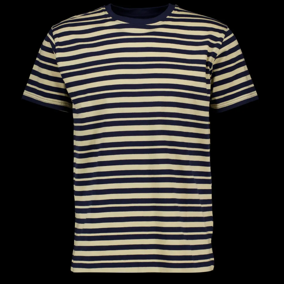 Dit T-shirt voor mannen is gemaakt van 100% katoen, wat zorgt voor een comfortabele pasvorm. Het heeft een gestreept ontwerp in verschillende tinten blauw. De ronde hals en korte mouwen bieden een casual uitstraling. Dit T-shirt is veelzijdig en eenvoudig te combineren met verschillende outfits. Het wordt per stuk verkocht.