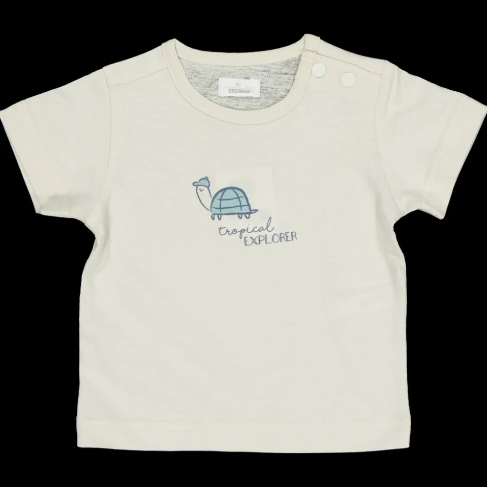 Dit T-shirt voor baby's is gemaakt van 100% katoen en voelt zacht aan op de huid. Het is unisex en heeft een lichte kleur. De drukknopen op de schouder maken het gemakkelijk om aan en uit te trekken. Met een leuke print van een schildpad is het een vrolijke toevoeging aan iedere outfit.