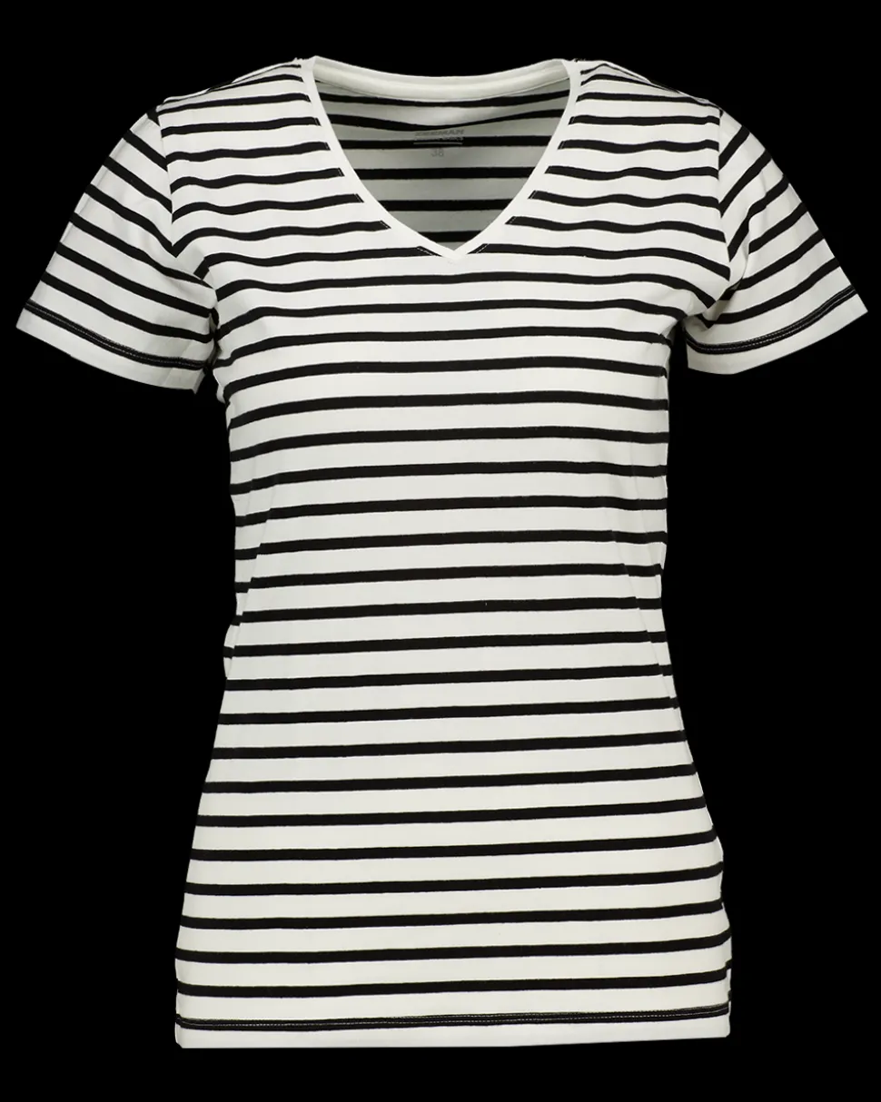 Dit witte T-shirt voor vrouwen heeft korte mouwen en een V-hals. De samenstelling van 95% katoen en 5% elastaan zorgt voor een comfortabele pasvorm met wat rek. Het is een eenvoudige basis die je goed kunt dragen bij verschillende gelegenheden.