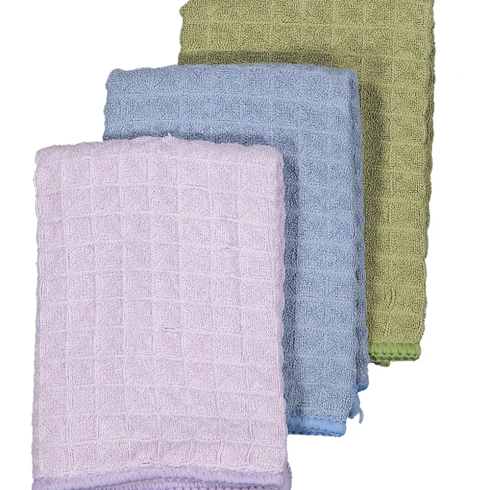 Deze vaatdoeken hebben een lichte structuur en zijn in de kleur paars. Ze zijn gemaakt van polyester en polyamide, wat zorgt voor een stevige kwaliteit. Met deze set van drie zorg je gemakkelijk voor een schone keuken zonder veel gedoe.